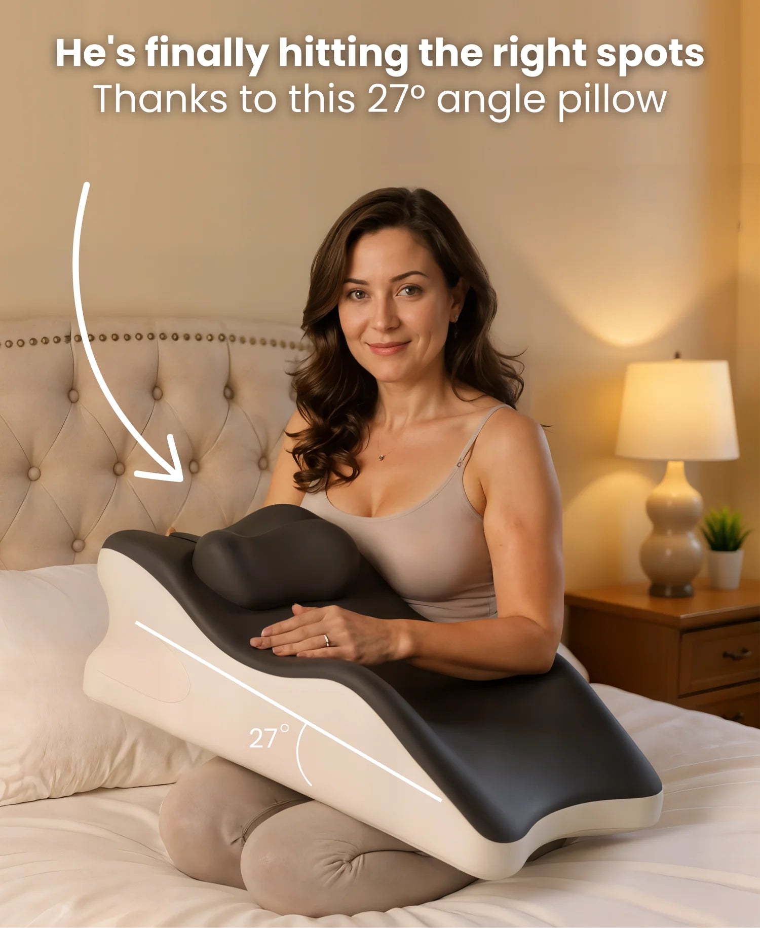 The 27° angle isn't random - it's scientifically designed to create optimal positioning for deeper connection. Regular pillows compress and slip, but our engineered memory foam maintains this perfect angle under pressure. It's the difference between struggling with awkward positioning and effortlessly hitting the right spot every time. Thousands of couples say it transformed their intimacy overnight.